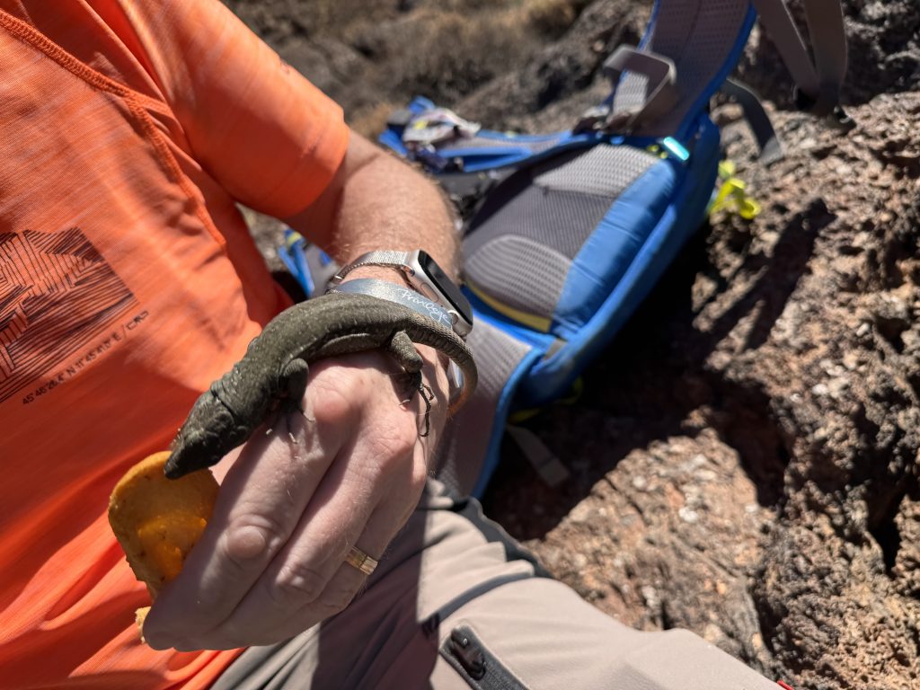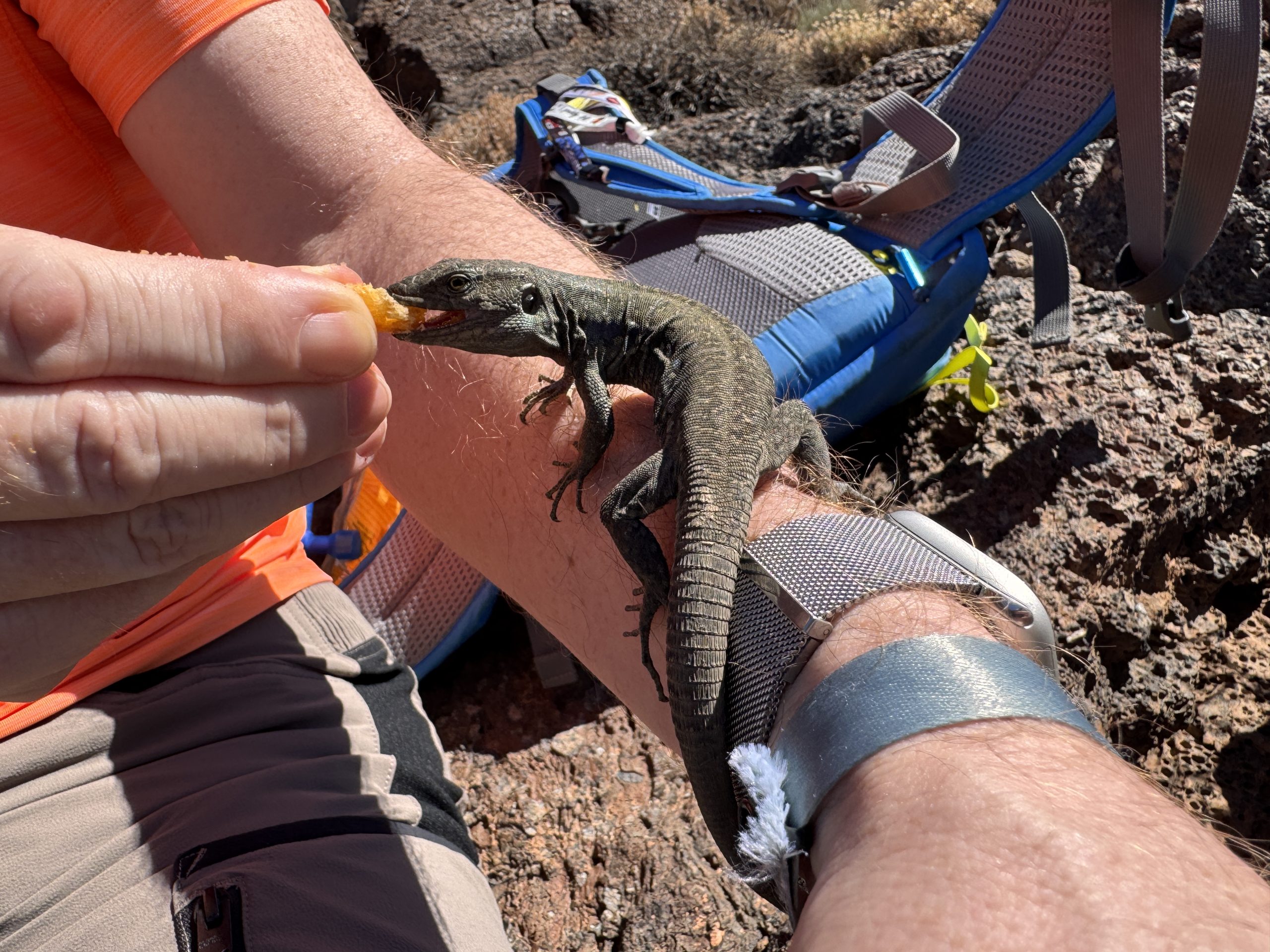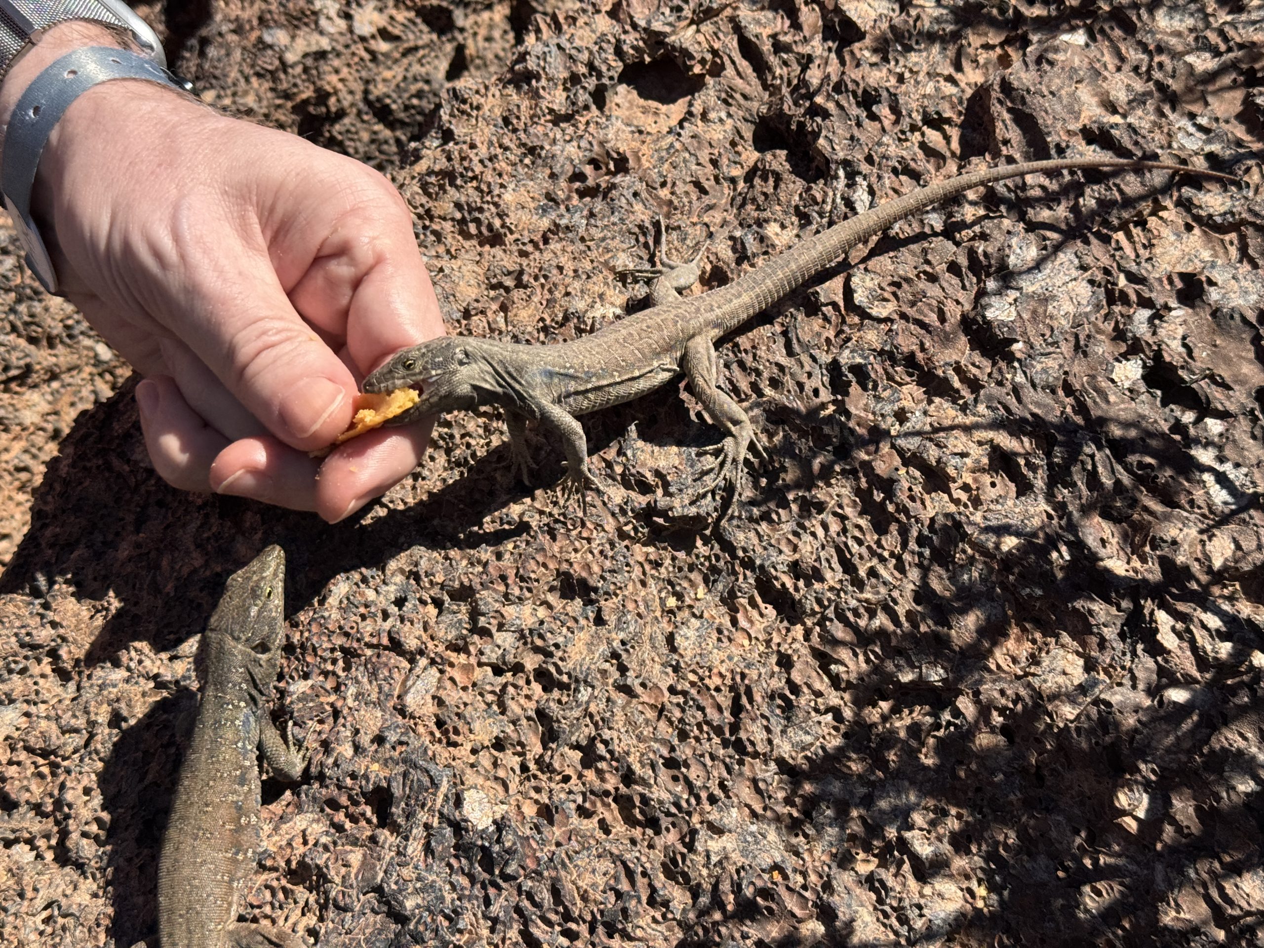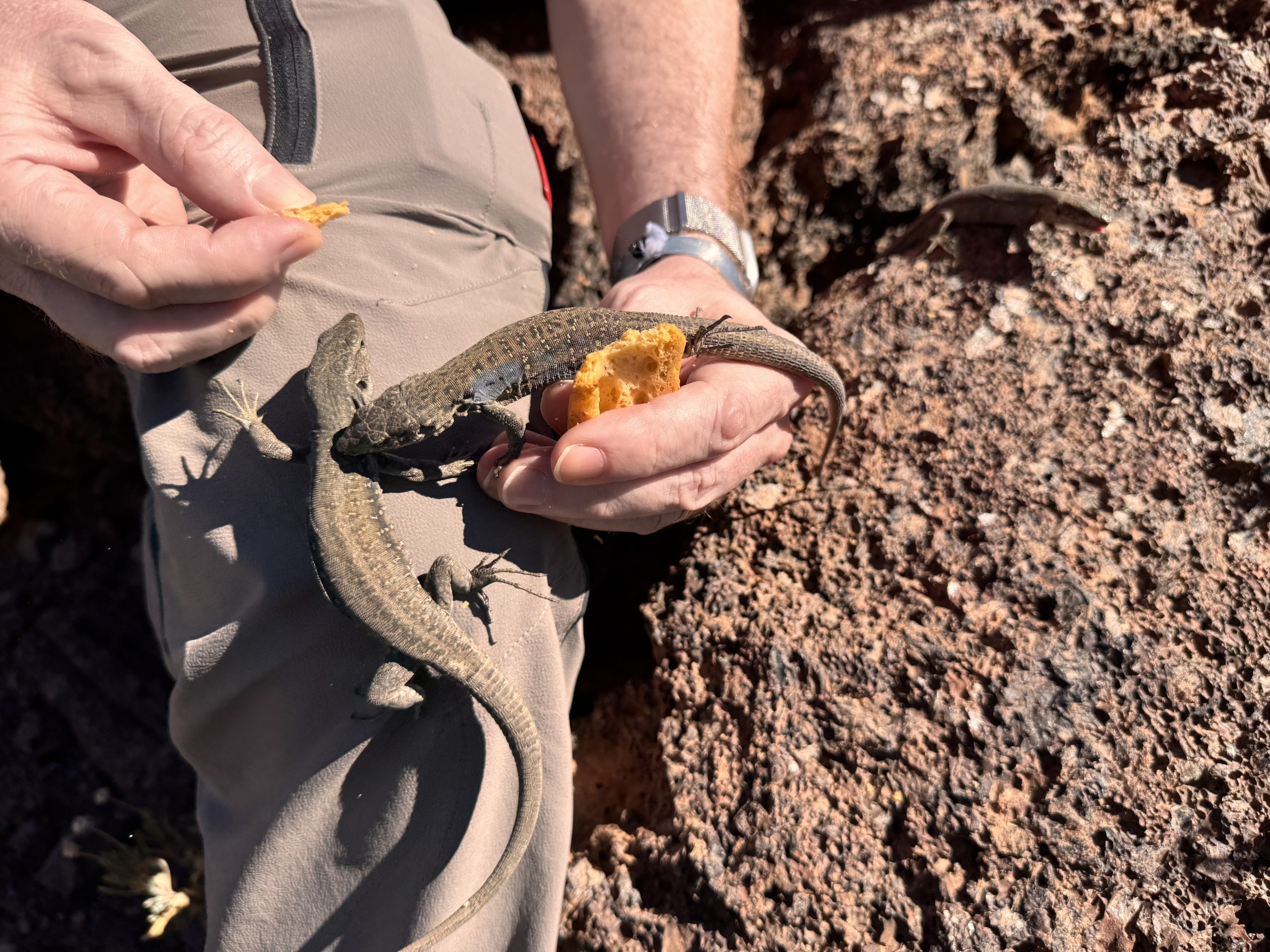 Ja, und dann kamen wir bei unserem Rastplatz von letztem Jahr an. Nachdem auf der ganzen Wanderung von Eidechsen keine Spur zu sehen war 😳, verschwanden hier als wir ankamen ein paar Schwänze unter den Steinen. Nachdem wir einen Moment ruhig da saßen und ein bisschen geknabbert haben, hat sich das schnell gelegt und es wurde „wuselig“ um uns. 🦎🦎🦎🦎🦎 Soooooooooo süüüüüüüüüüüß! 🤩