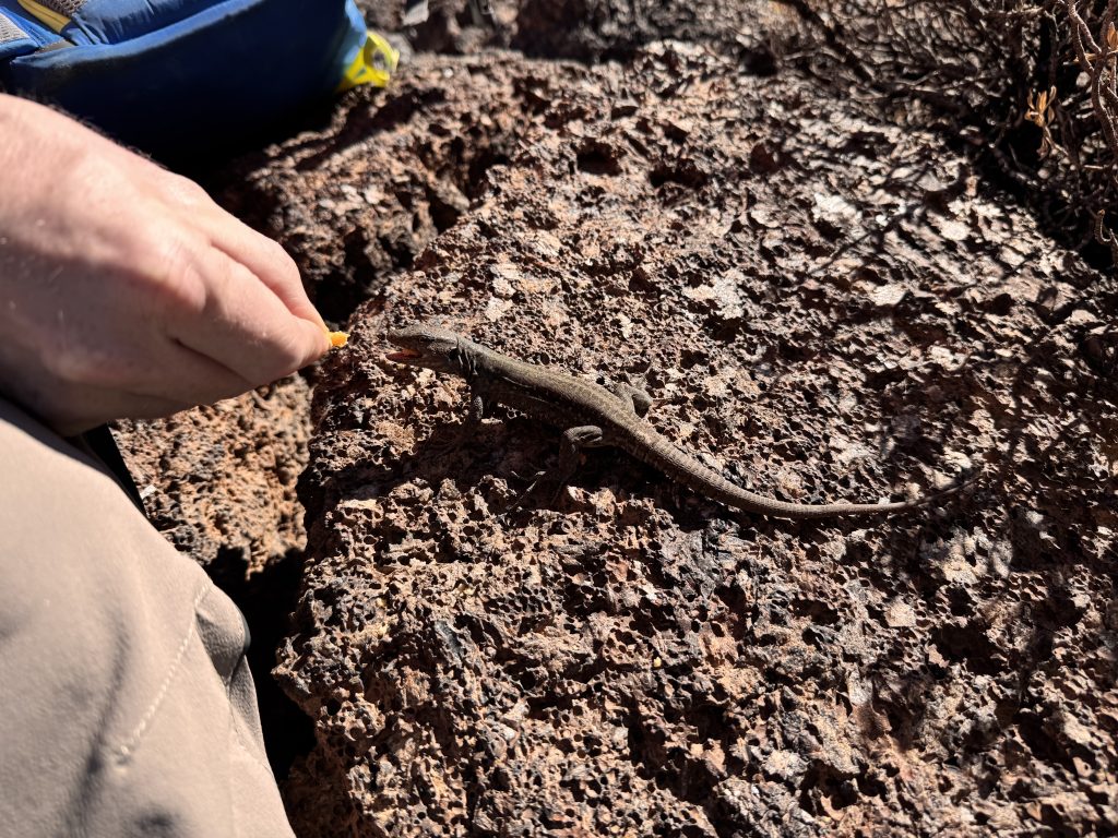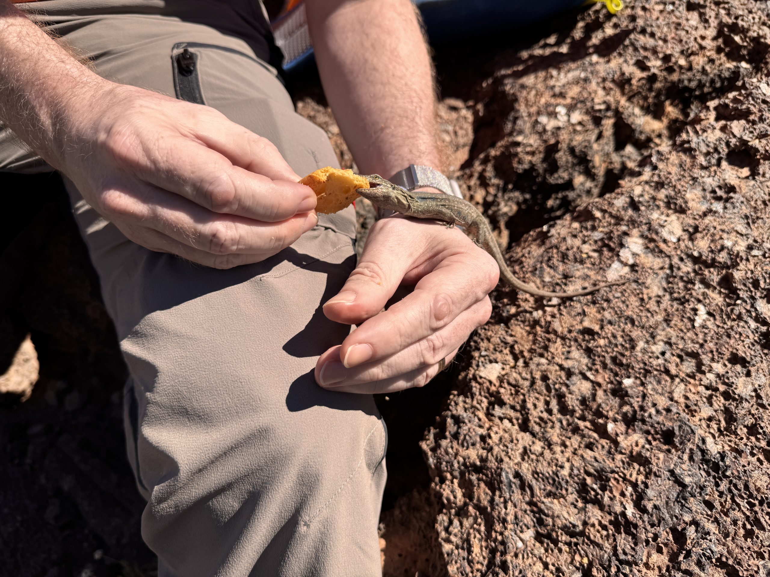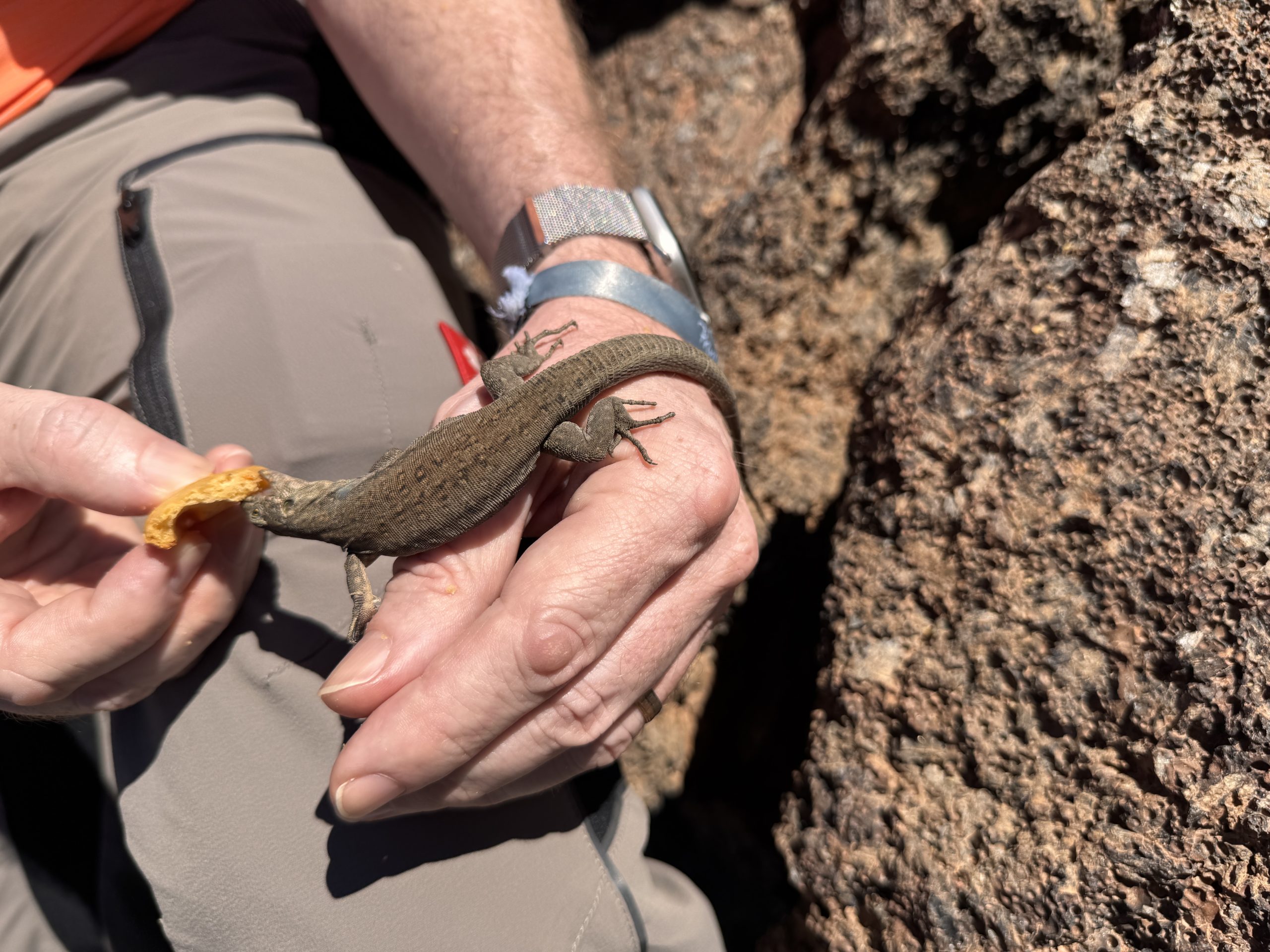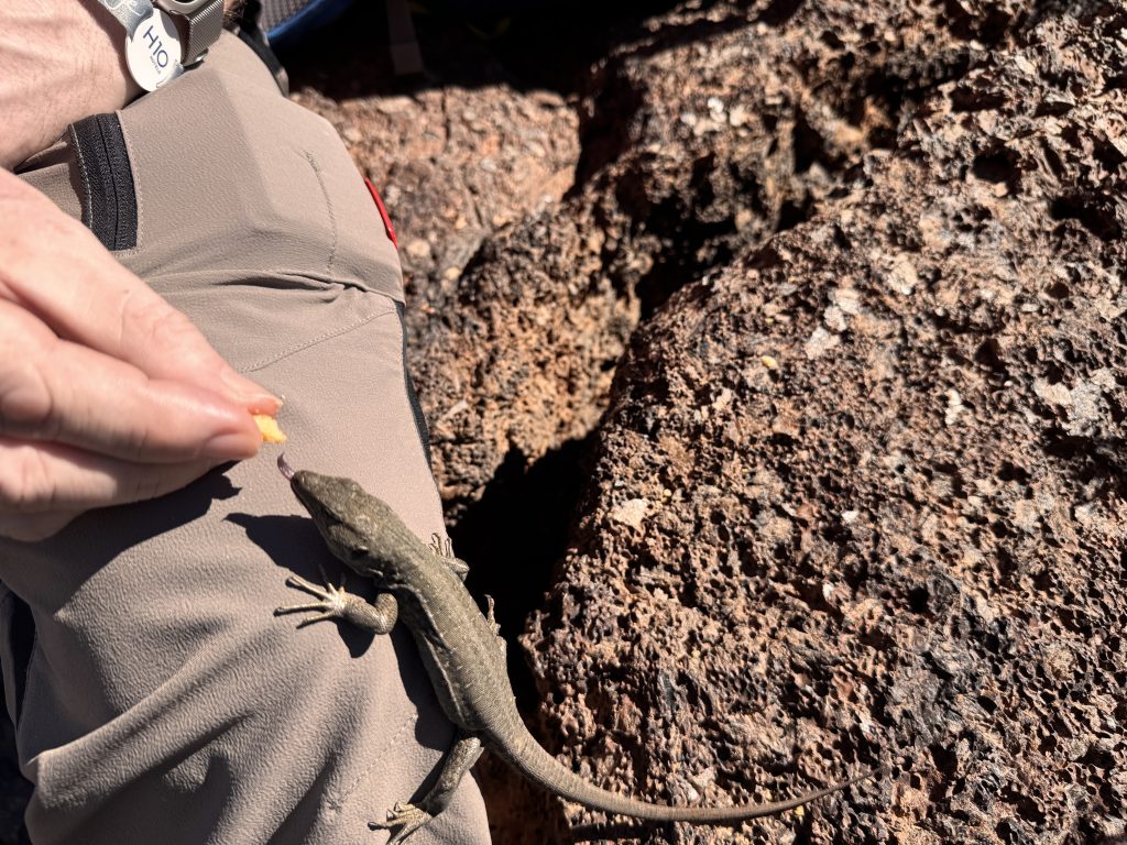 Ja, und dann kamen wir bei unserem Rastplatz von letztem Jahr an. Nachdem auf der ganzen Wanderung von Eidechsen keine Spur zu sehen war 😳, verschwanden hier als wir ankamen ein paar Schwänze unter den Steinen. Nachdem wir einen Moment ruhig da saßen und ein bisschen geknabbert haben, hat sich das schnell gelegt und es wurde „wuselig“ um uns. 🦎🦎🦎🦎🦎 Soooooooooo süüüüüüüüüüüß! 🤩