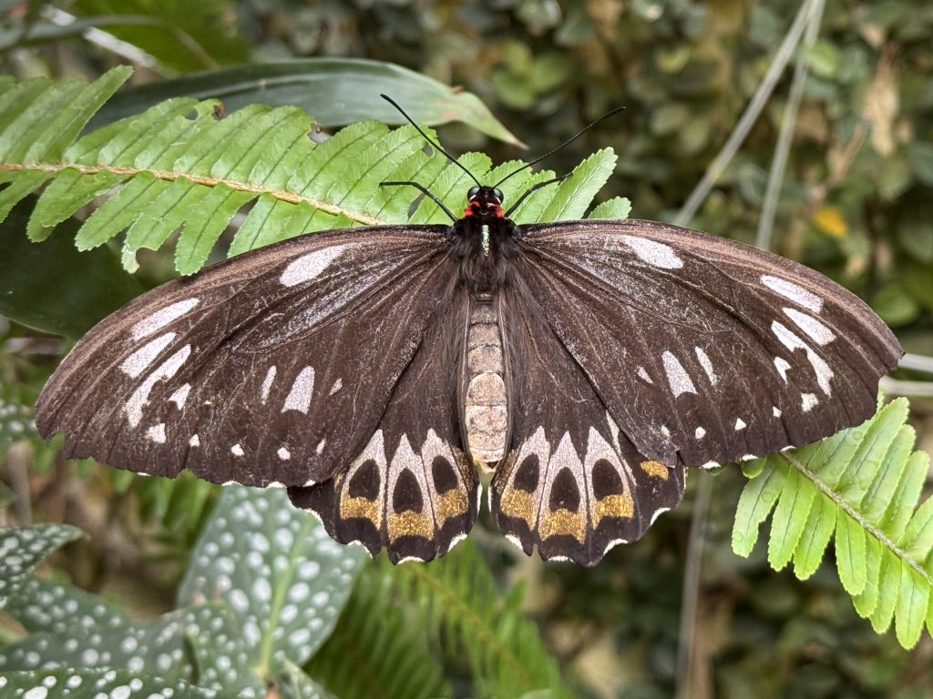 Das Weibchen einer der größten Schmetterlingsarten. Das Männchen haben wir leider nicht gefunden, das hätte eine tolle smaragdgrüne Musterung gehabt.