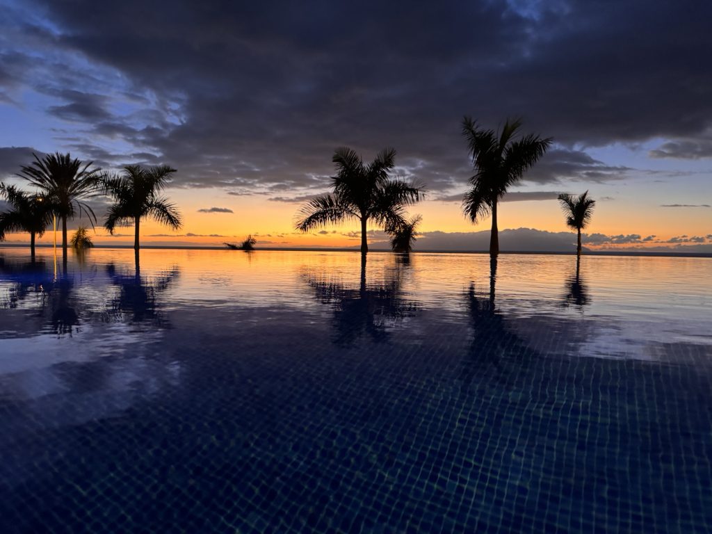 Vor dem Abendessen haben wir dann noch eine Weile am Infinity Pool gesessen und mit einem Glas Cava beziehungsweise einem Bacardi Cola auf einen schönen Abend angestoßen.